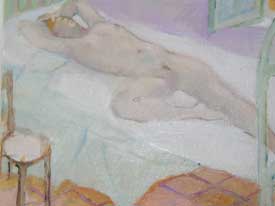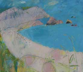 cloud’s sudden descent on a sunny landscape. Her use of colour is quite unique; marvellous juxtapositions of hues in abstracts, landscapes and figure studies alike. Undoubtedly this is affected by the light at the edge of Cornwall where she lives and paints. Sizes given are for the image alone. Frames are between 3” and 4” deep. Prices on request. |